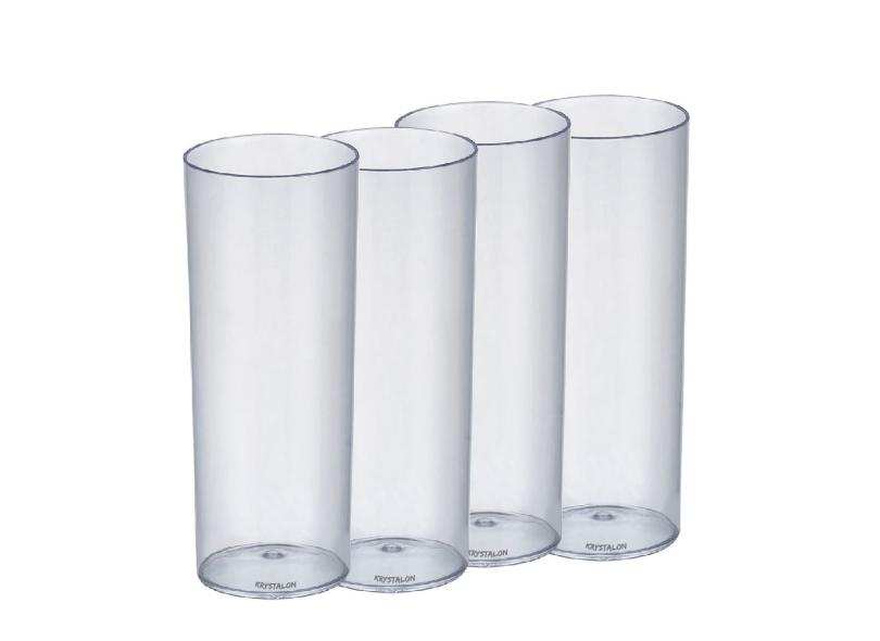 Kit 4 Copos Tubo 300 Ml Krystalon Transparente Em Acrílico