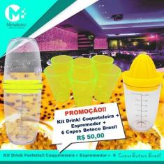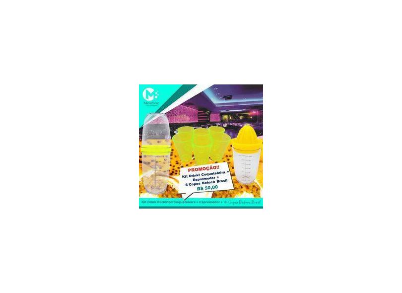 Kit Drink Maracujá Coqueteleira + Espremedor + 6 Copos Boteco Brasil