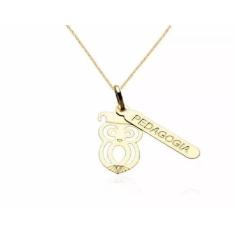 Colar Cordão Pedagogia Professora Folheado Ouro 18k