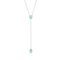 Colar de Prata Gravata Cristal Ponto Verde Claro