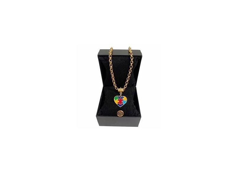 Colar Feminino Elo Português Grosso 6mm Coração Autista