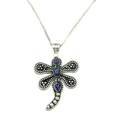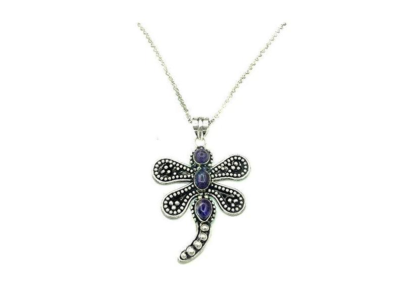 Colar Indiano Banhado a Prata Libélula Ametista Natural