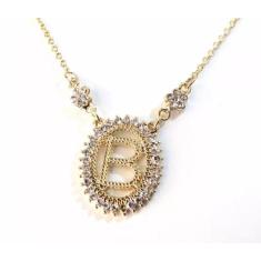 Colar Inicial Letra B Cristal Folheado a Ouro 18k