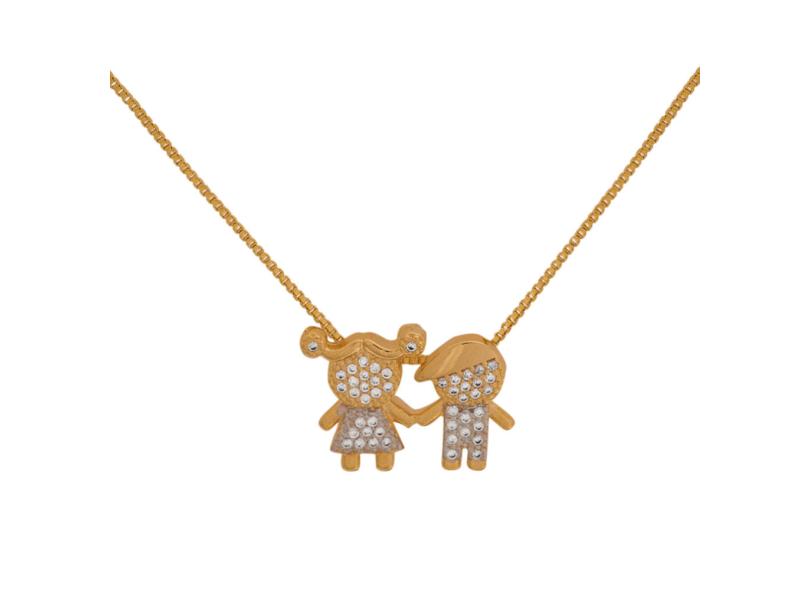 Colar Menina Menino Casal Cravejado Folheada Ouro 18K