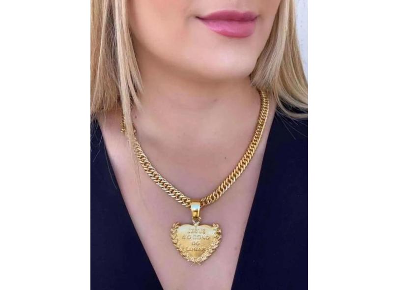 Cordão 10Mm Grumet Feminino + Pingente Banhado A Ouro 18K