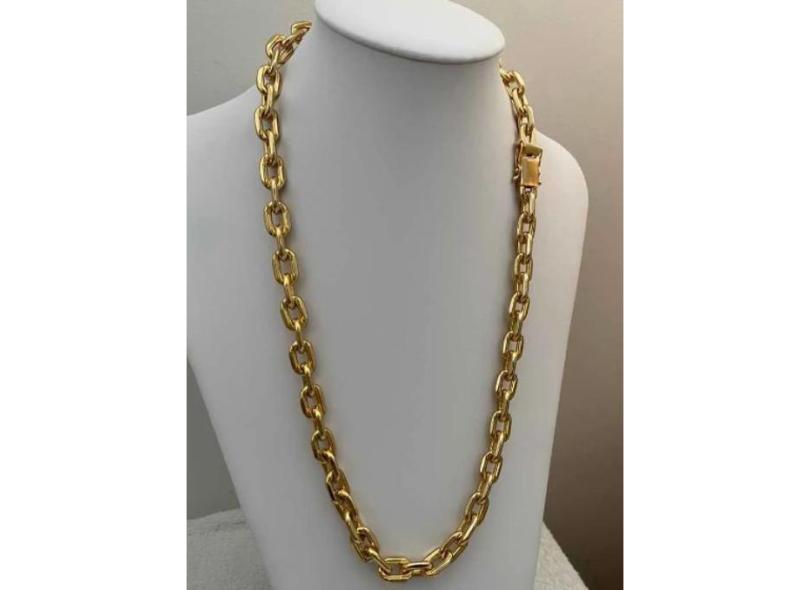 Cordão 14Mm Masculino Cadeado Banhado A Ouro 18K Luxo