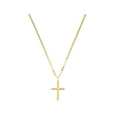 Cordão Corrente Piastrine 60cm Pingente Crucifixo 2.7cm Ouro 18k 750