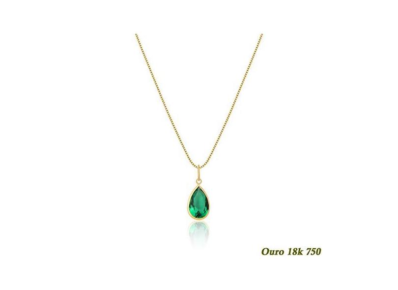 Cordão Feminino Veneziana Ouro 18k 45cm Gota De Zircônia 9mm Verde Esmeralda