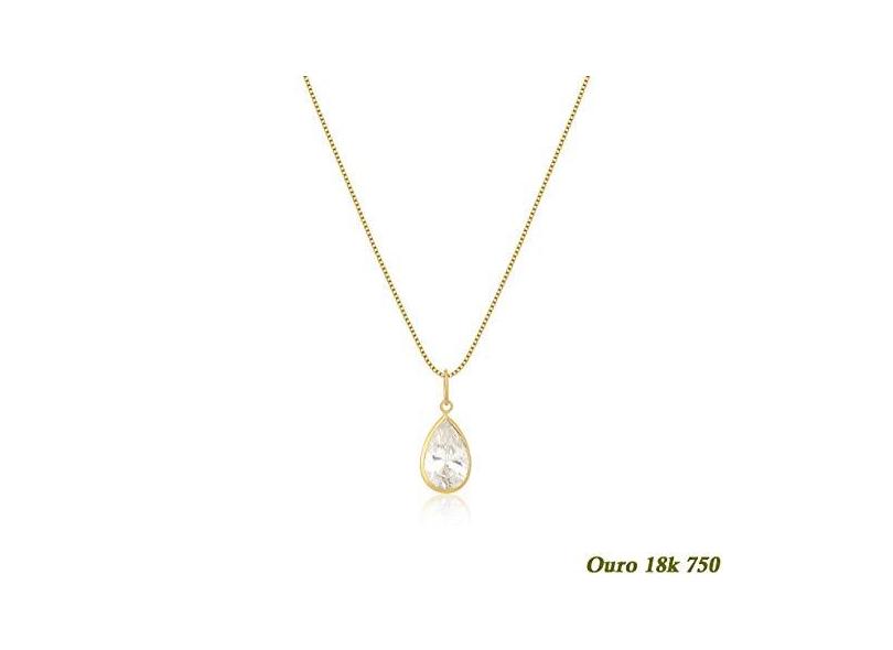 Cordão Feminino Veneziana Ouro 18k 50cm Gota De Zircônia 9mm