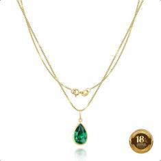 Cordão Feminino Veneziana Ouro 18k 50cm Gota De Zircônia 9mm Verde Esmeralda
