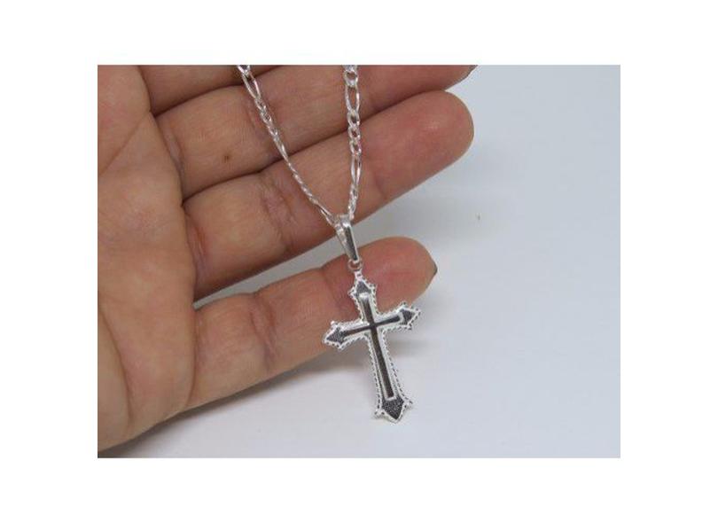 Corrente Cordão Masculino 5mm Pingente Crucifixo Prata 925