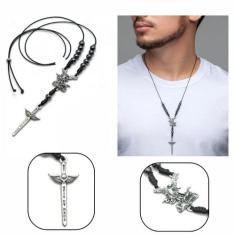 Crucifixo Colar De Pescoço Masculino São Miguel Arcanjo Dezena Com Cordão Imbuia
