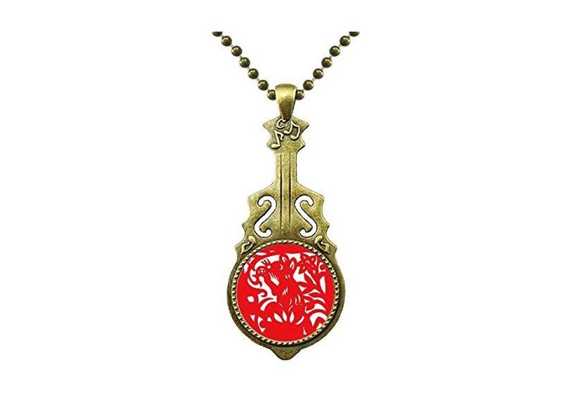 DIYthinker Colar de animal de rato, corte de papel, zodíaco chinês, pingente de música de guitarra antiga