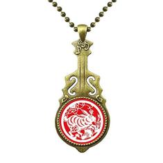 DIYthinker Colar de arte do zodíaco chinês de coelho cortado em papel com pingente de música de guitarra antiga