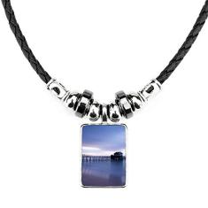 DIYthinker Colar Ocean House Water Science Nature Picture Jewelry Torque Leather Rope Pendant