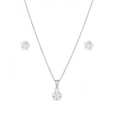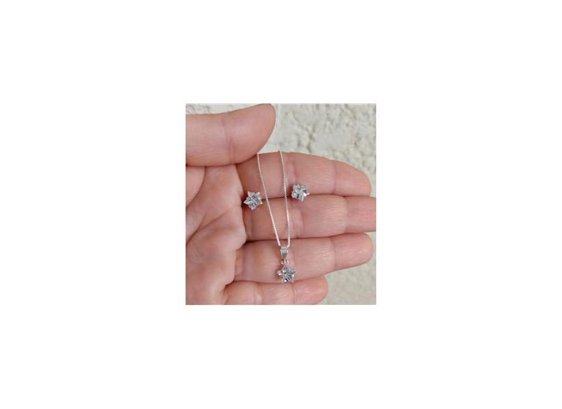 Kit Corrente Colar 40cm Ponto De Luz Brincos Prata 925