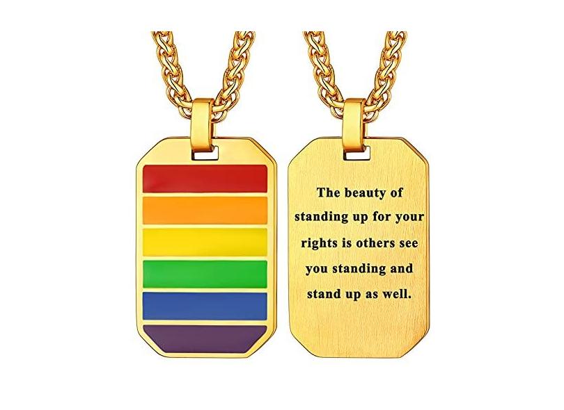 U7 Colar de aço inoxidável arco-íris LGBT Orgulho, pingente personalizado com etiqueta de cachorro, colar Love is Love, joia de orgulho gay e lésbico para homens e mulheres Medium