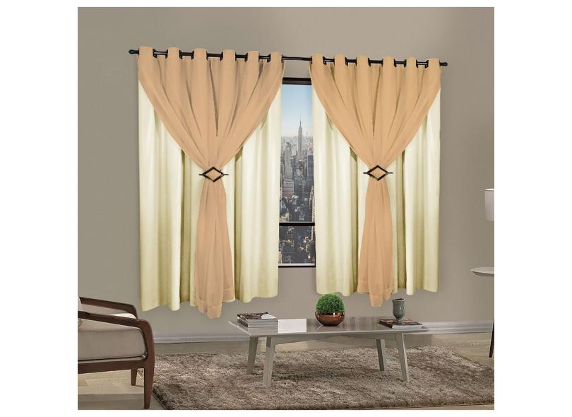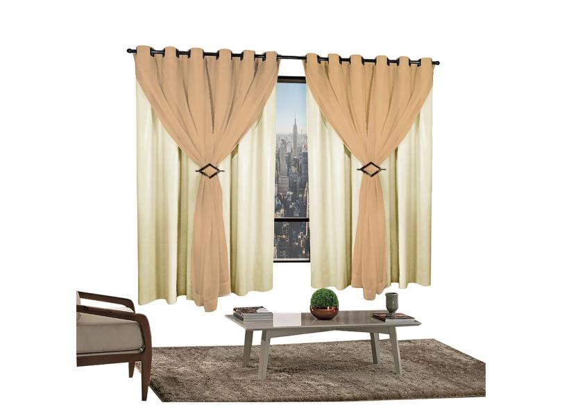 Cortina Corta Luz 2,00m X 1,80m 100% Blackout Com Voil Avelã