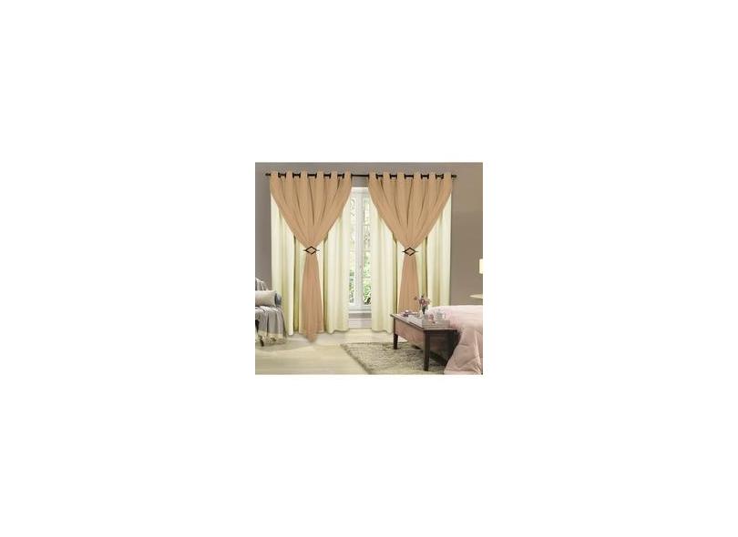 Cortina Corta Luz 2,00m X 2,50m 100% Blackout Com Voil Avelã Para Sala Ou Quarto Para Varão Simples