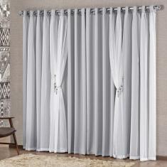 Cortina Mabelle Luxo Para Varão Tecido Semi Blackout E Voal 3,00 X 2,50 Metros - Avelã