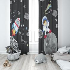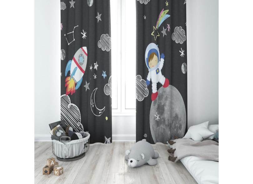 Cortina Tecido Oxford Astronauta e Foguete Espaço - 220x140cm