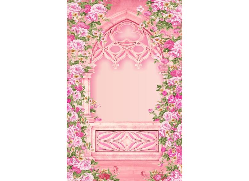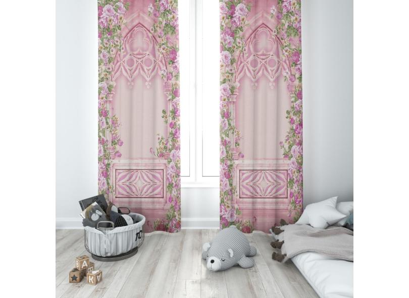 Cortina Tecido Oxford Castelo Arcos e Flores - 220x140cm
