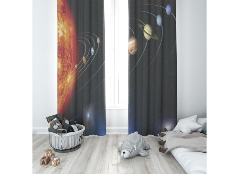 Cortina Tecido Oxford Espaço Planetas Sistema Solar - 220x140cm