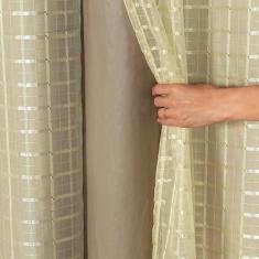 Cortina Voil Xadrez Com Forro Blackout 2,00 X 1,70 Avelã