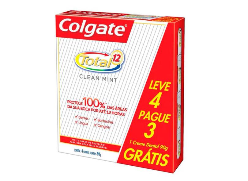 Creme Dental Colgate Total 12 Clean Mint 90g 4 Unidades