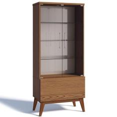 Cristaleira com Espelho e LED 2 Portas em Vidro 1 Gaveta Classic Retrô Imcal Freijó