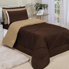 Kit Edredom Dupla Face Ternura Solteiro 4 Peças - Tabaco e Avelã