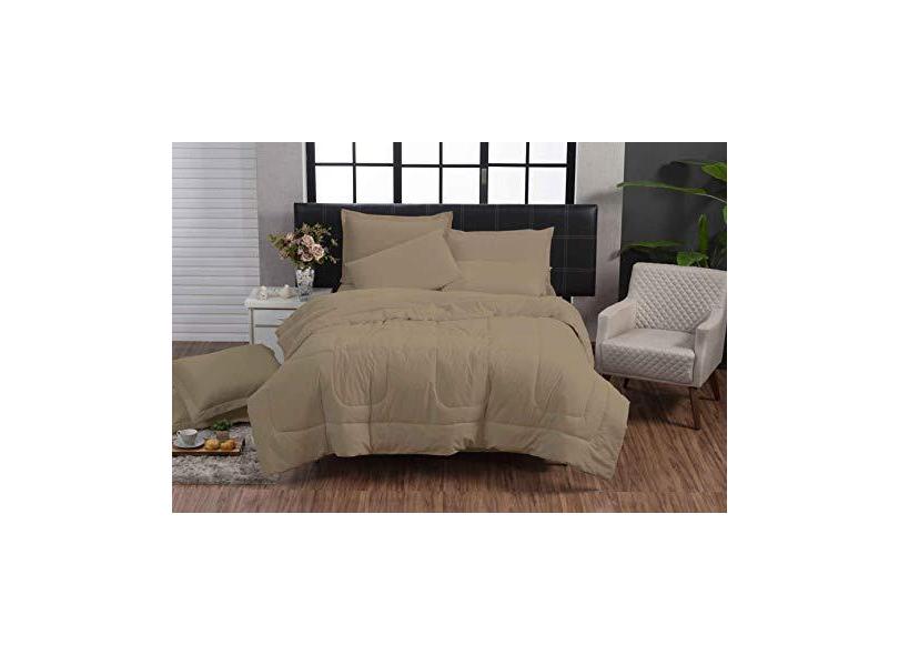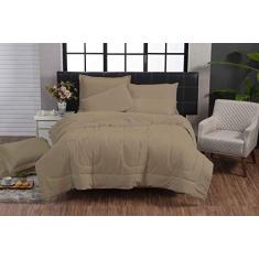 Kit Edredom QUEEN 6 Peças Dupla Face Italiano Macio Cor Capuccino e Milk Casa Dona