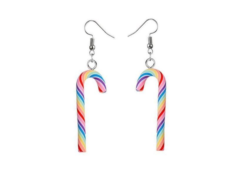 Brincos femininos com pingente de bengala doce e pingente de Natal em resina arco-íris colorido doce de açúcar enfeite de natal brincos de argola fashion joias presentes para filha Ano Novo, Small,