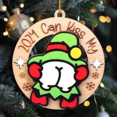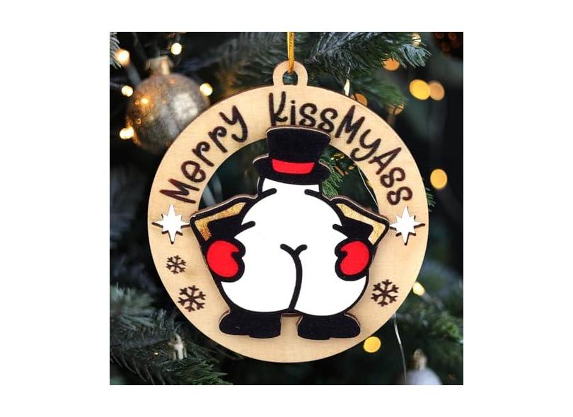 Enfeites engraçados de madeira de Natal Merry 2024 KissMyAss humor árvore de Natal decorações de festa de Natal, decoração de árvore de Natal feia travessa, presente de Papai Noel sujo para adultos,