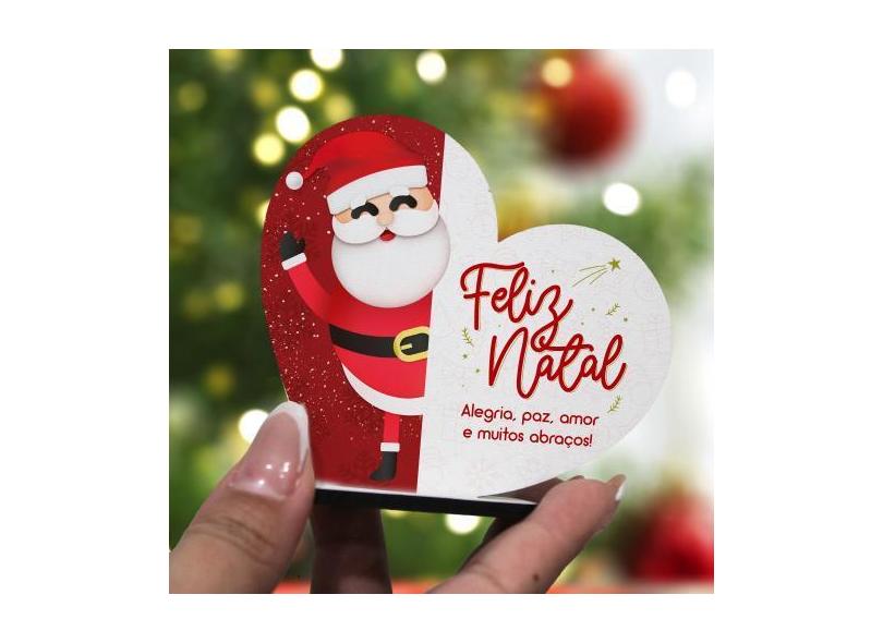 Kit com 10 Enfeites de Natal em Formato de Coração Decoração em MDF p