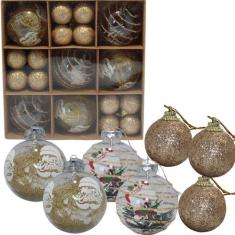 Kit Decoração Enfeite De Natal 8cm E 4cm 30 Unidade Dourado - Elite
