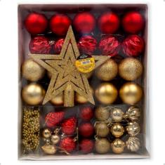 Kit Enfeites de Natal Bolas Estrela Dourado e Rosa Completo