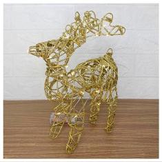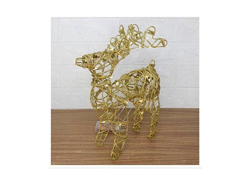 Rena Aramada Natal Iluminada 30 Led Dourada Com Glitter 30cm