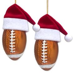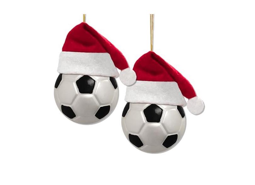 Ushinemi Conjunto de 2 enfeites de futebol para árvore de Natal, enfeites de Natal de futebol de vidro 2024 em chapéu de Papai Noel, decoração de pendurar de Natal, enfeite de vidro soprado