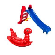 Escorregador Médio 3 Degraus + Gangorra Colorida Playground - Rotoplay