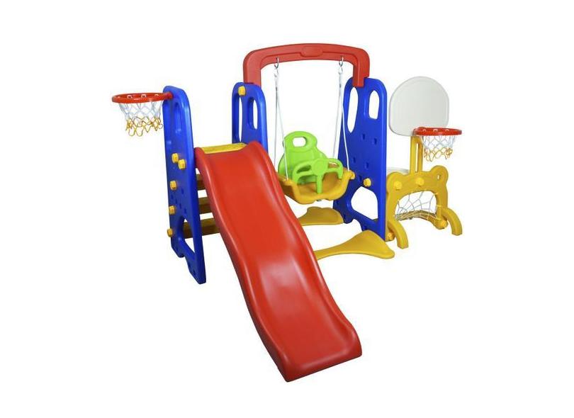 Playground Infantil 5 Em 1 Escorregador Balanço Cesta Basquete Gol Bri