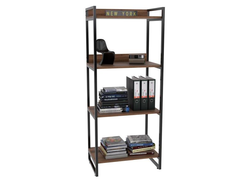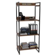 Estante Livreiro Prisma Estilo Industrial 60cm 4 Prateleiras C08 Nogal - Mpozenato