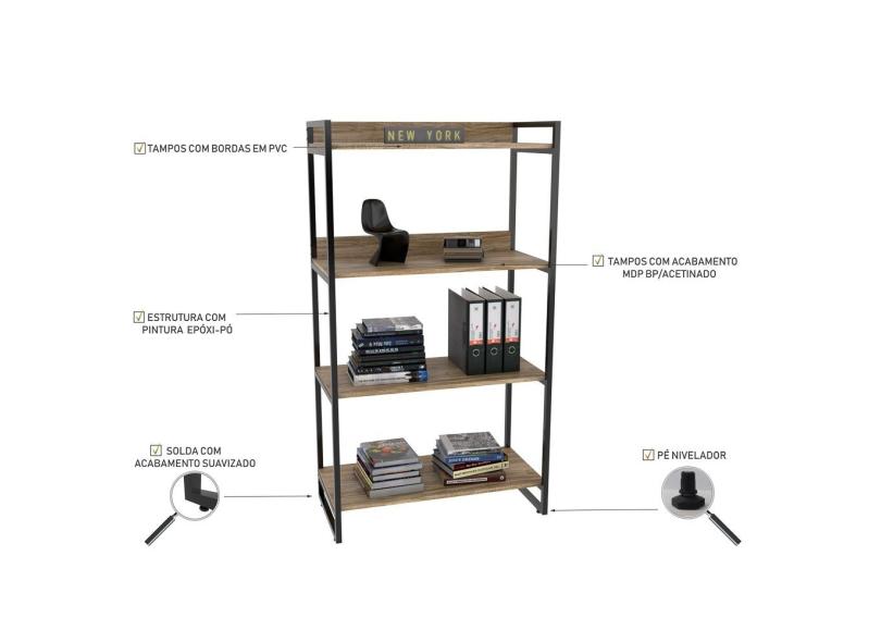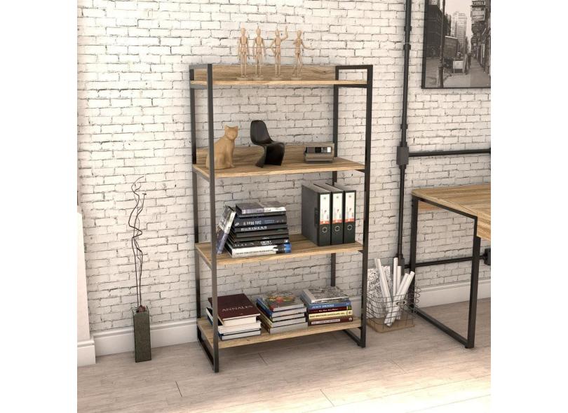 Estante Livreiro Prisma Estilo Industrial 80cm 4 Prateleiras C08 Carvalho - Mpozenato