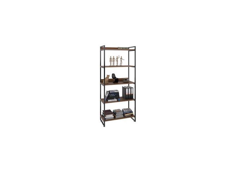 Estante Livreiro Prisma Estilo Industrial 80cm 5 Prateleiras C08 Nogal - Mpozenato
