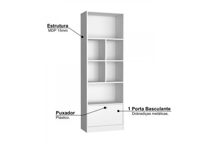 Estante para Escritório 6 Nichos 1 Porta Basculante Bali Nova Mobile Mel/