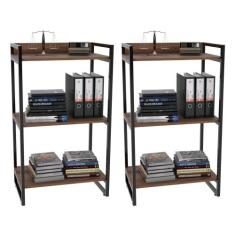 Kit 2 Estantes Livreiro Prisma Estilo Industrial 60cm 3 Prateleiras Nogal - Mpozenato