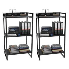 Kit 2 Estantes Livreiro Prisma Estilo Industrial 60cm 3 Prateleiras Onix - Mpozenato