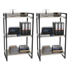Kit 2 Estantes Livreiro Prisma Estilo Industrial 60cm 3 Prateleiras Snow - Mpozenato