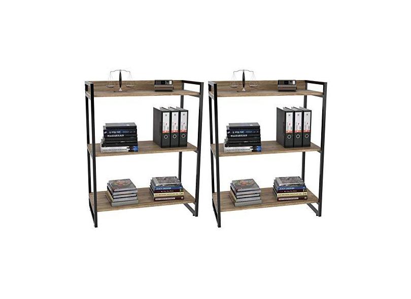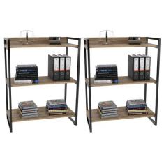 Kit 2 Estantes Livreiro Prisma Estilo Industrial 80cm 3 Prateleiras Carvalho - Mpozenato