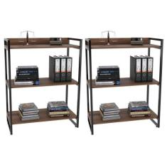 Kit 2 Estantes Livreiro Prisma Estilo Industrial 80cm 3 Prateleiras Nogal - Mpozenato